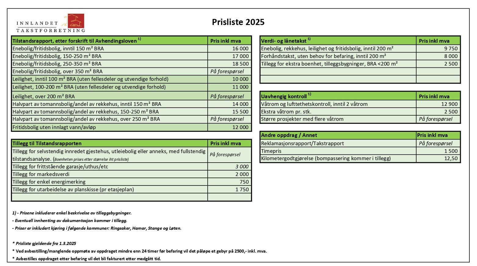 Her finner du vår nyeste prisliste. Ta gjerne kontakt om du har noen spørsmål i forhold til våre priser.